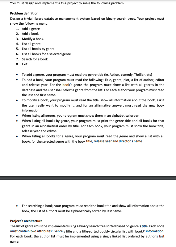 Solved You Must Design And Implement A C Project To Solve Chegg Com